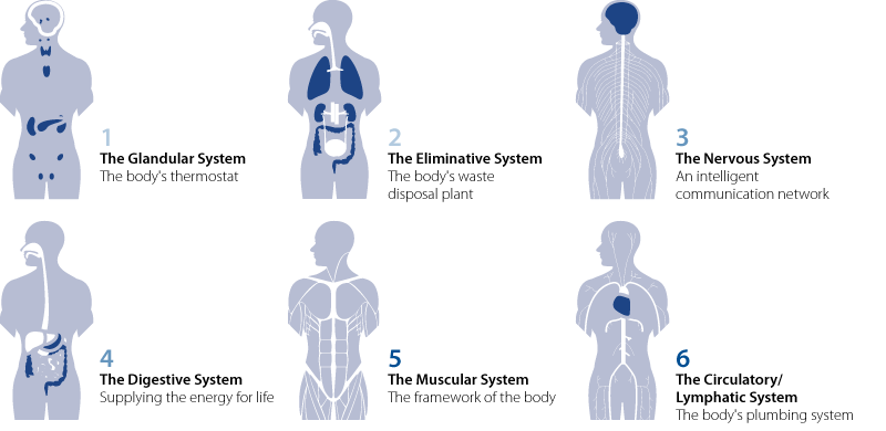 “There are ONLY SIX kinds of disturbances that can affect the human body. These are GLANDULAR, ELIMINATIVE, NERVOUS, DIGESTIVE, MUSCULAR, and CIRCULATORY. All diseased conditions, aches and pains, and other discomforts experienced by the body can be attributed to one or more of the above disturbances to the body’s 6 systems or Zones.”